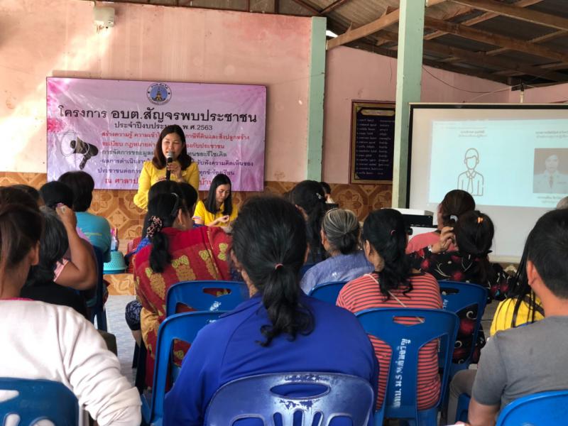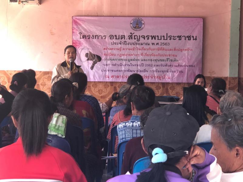 โครงการ อบต.สัญจรพบประชาชน ประจำปีงบประมาณ 2563 (บ้านคำเจริญ หมู่ที่ 5) สร้างความรู้ความเข้าใจเกี่ยวกับภาษีที่ดินและสิ่งปลูกสร้าง งานการศึกษา ศาสนาและวัฒนธรรม การจัดการขยะมูลฝอย กองทุนขยะรีไซเคิล สวัสดิการผู้สูงอายุ ผู้พิการ ผู้ด้อยโอกาส การขึ้นทะเบียนเด็กแรกเกิด และประชาสัมพันธ์ผลการดำเนินงานในรอบปีฯ