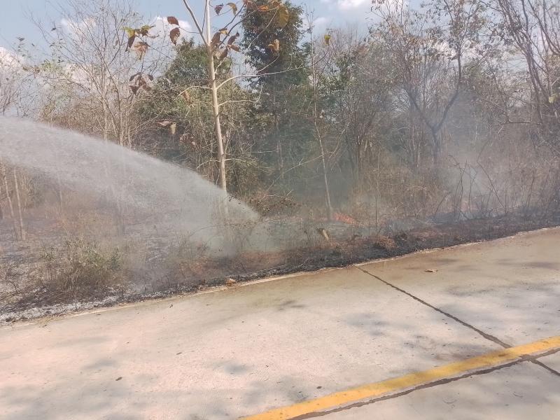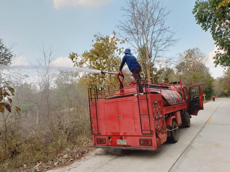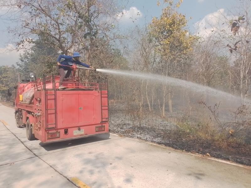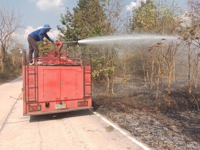 งานป้องกันและบรรเทาสาธารณภัย สำนักปลัด องค์การบริหารส่วนตำบลค้อใต้ ช่วยระงับเหตุไฟลามทุ่งบริเวณบ้านนาดอกไม้ ตำบลบงใต้