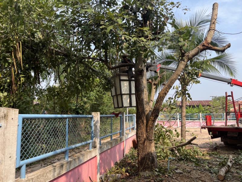 กองช่างร่วมกับสำนักปลัด องค์การบริหารส่วนตำบลค้อใต้ลงพื้นที่ตัดกิ่งไม้ปรับปรุงภูมิทัศน์ ณ ศูนย์พัฒนาเด็กเล็กบ้านขามพัฒนา
