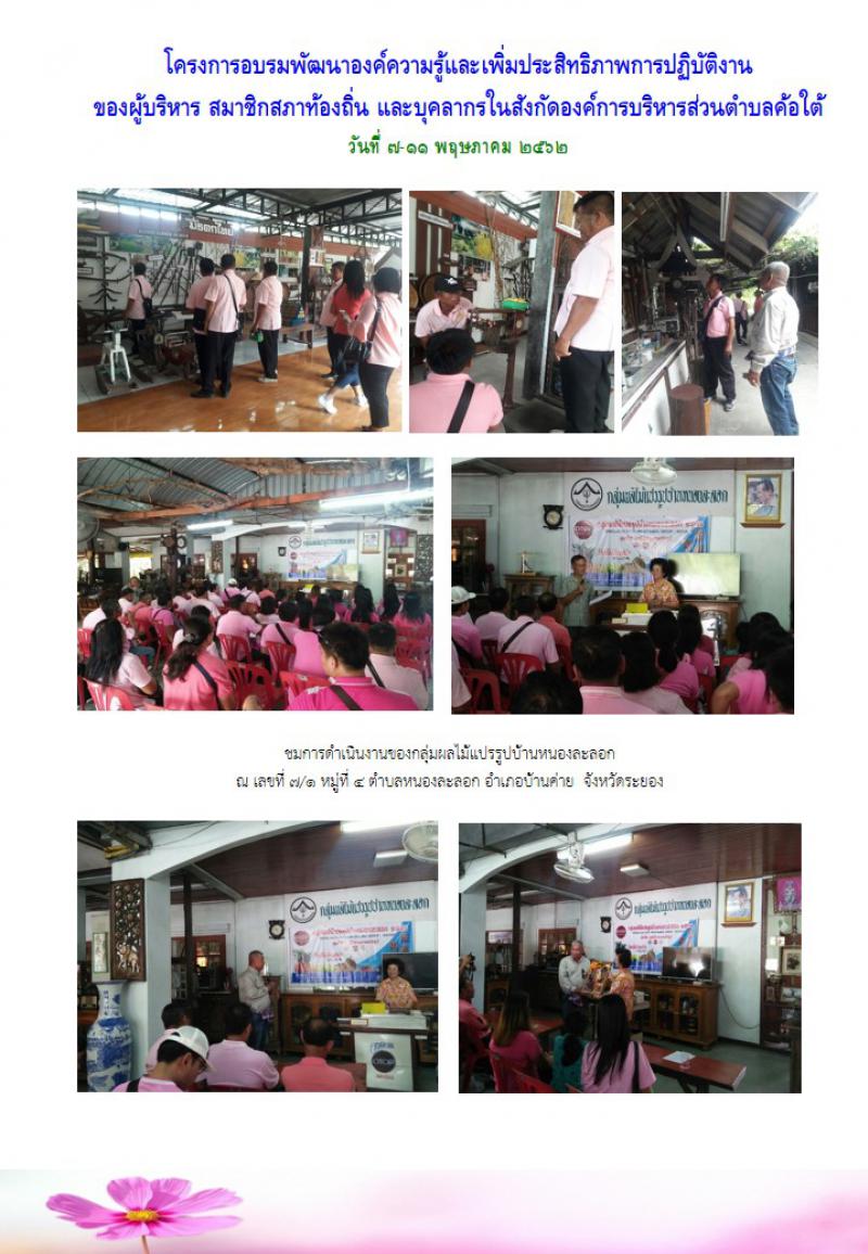 โครงการอบรมพัฒนาองค์ความรู้และเพิ่มประสิทธิภาพการปฏิบัติงานของผู้บริหาร สมาชิกสภาท้องถิ่น และบุคลากรในสังกัดองค์การบริหารส่วนตำบลค้อใต้ ประจำปีงบประมาณ พ.ศ. 2562