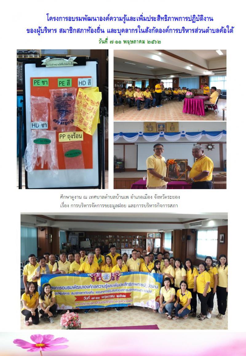 รายละเอียด : โครงการอบรมพัฒนาองค์ความรู้และเพิ่มประสิทธิภาพการปฏิบัติงานของผู้บริหาร สมาชิกสภาท้องถิ่น และบุคลากรในสังกัดองค์การบริหารส่วนตำบลค้อใต้ ประจำปีงบประมาณ พ.ศ. 2562 เพื่ออบรมพัฒนาความรู้ ความสามารถของบุคลากรในฝ่ายต่างๆ เพื่อให้สามารถสนองความต้องการในการบริหารจัดการปัญหาและให้บริการแก่ประชาชนได้อย่างมีประสิทธิภาพตามหลักธรรมมาภิบาล รวมถึงเป็นการศึกษาหาแนวทางแก้ไขเพื่อรองรับปัญหาที่อาจจะเกิดขึ้น ระหว่างวันที่ 7-11 พฤษภาคม 2562