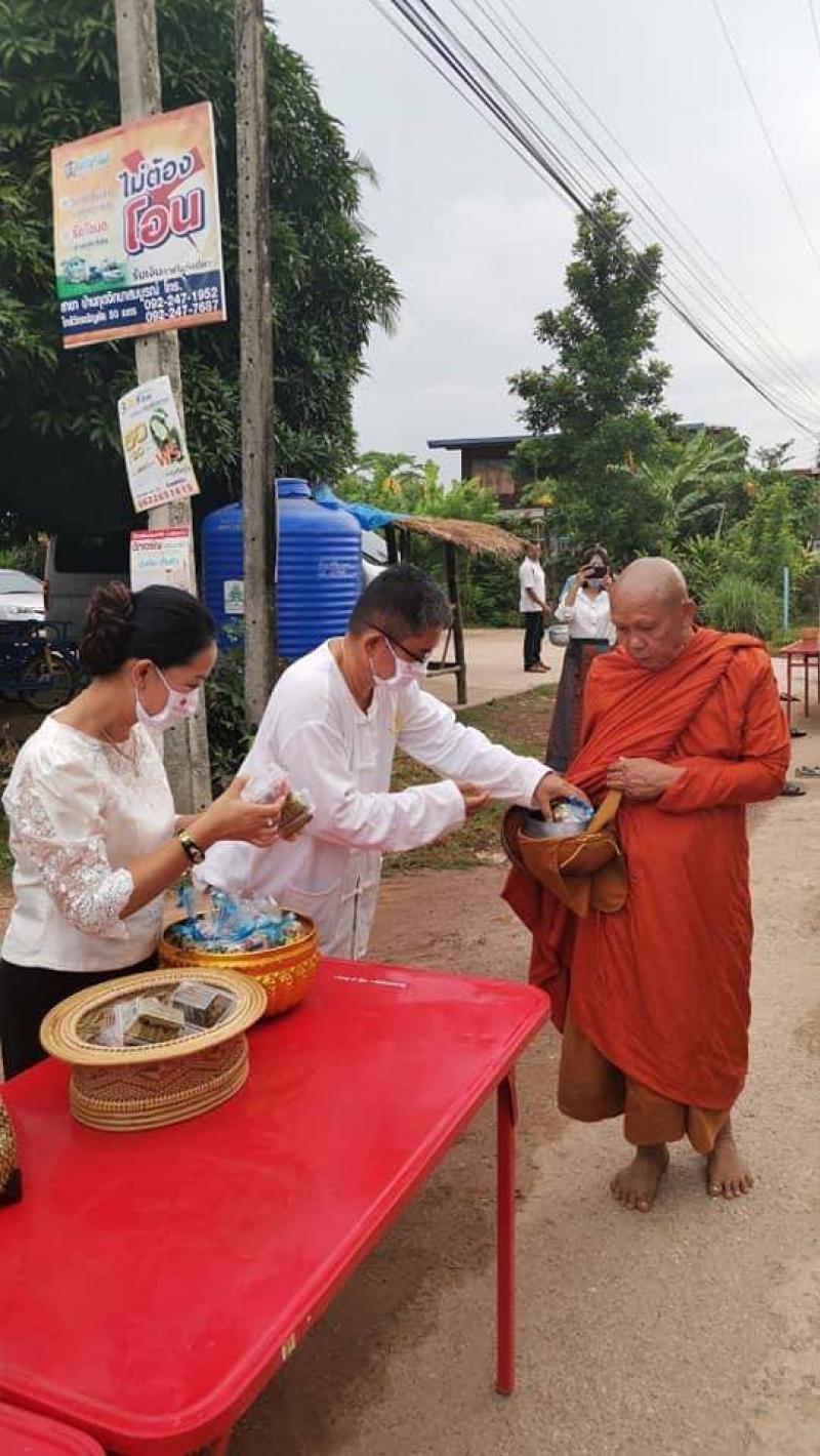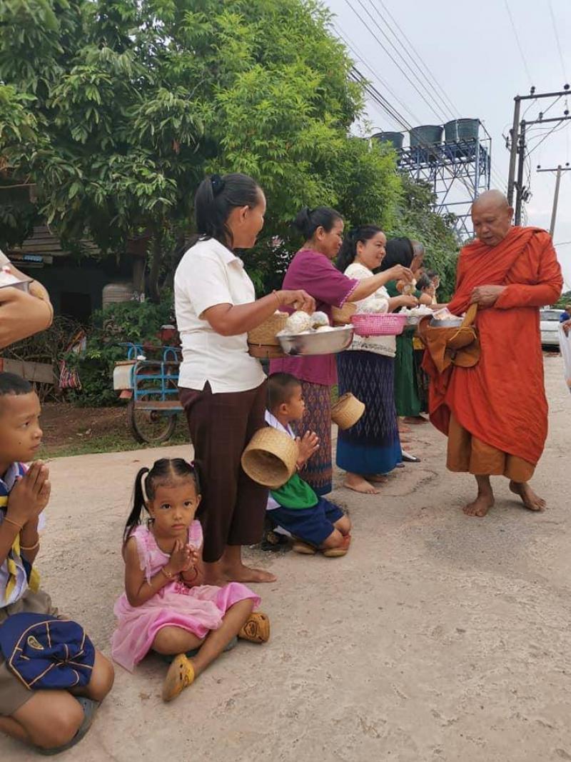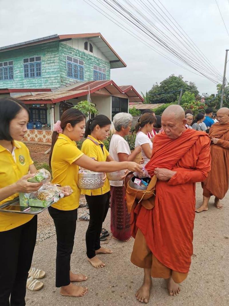 ทำบุญตักบาตร ฟังธรรมเทศนาเนื่องในวันพระและเทศกาลเข้าพรรษา ณ วัดพระธาตุฝุน ม.5 บ้านคำเจริญ