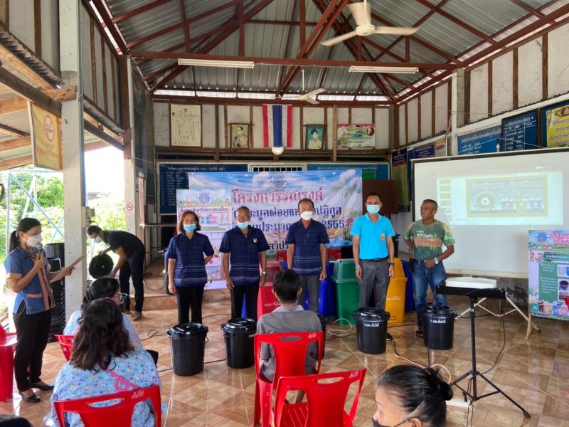 โครงการรณรงค์กำจัดขยะมูลฝอยและสิ่งปฏิกูล :กิจกรรม การจัดทำถังขยะเปียกลดโลกร้อนในระดับครัวเรือน เมื่อวันที่ 16 กันยายน 2565 ณ บ้านค้อใต้ หมู่ที่ 1
