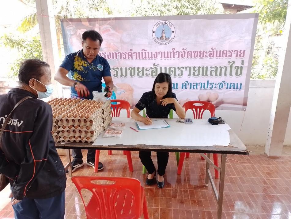 วันที่ 13 มีนาคม 2566 องค์การบริหารส่วนตำบลค้อใต้ ดำเนินโครงการกำจัดขยะอันตราย กิจกรรมขยะอันตรายแลกไข่ ประจำปีงบประมาณ พ.ศ. 2566 ณ ศาลาประชาคมบ้านขามพัฒนา ม.9 [13 มีนาคม 2566]