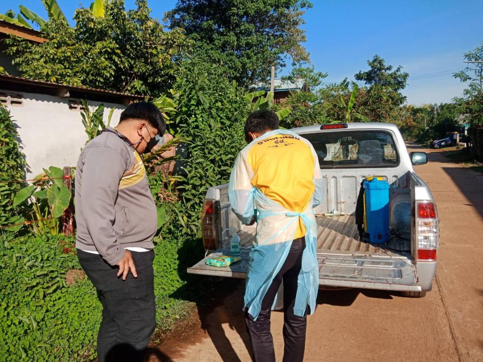วันที่ 9 พฤศจิกายน 2564 งานสาธารณสุขออกพ่นยาฆ่าเชื้อ ณ บ้านหนองโข่ย หมู่ที่ 6 เพื่อป้องกันการแพร่ระบาดของเชื้อไวรัสโควิด [10 พฤศจิกายน 2564]