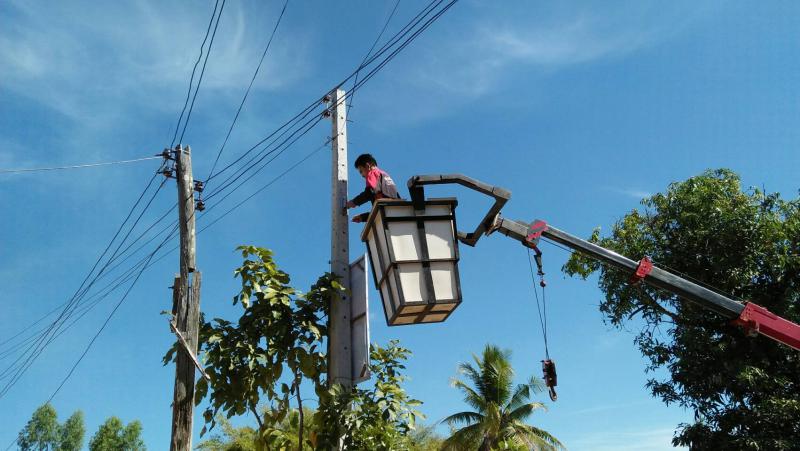 งานไฟฟ้า กองช่าง อบต.ค้อใต้ ออกบริการซ่อมแซมไฟฟ้าแสงสว่าง บริเวณหน้าศาลาประชาคมบ้านหนองโข่ย ม.๖ วันที่ ๑๗ ธันวาคม ๒๕๖๒