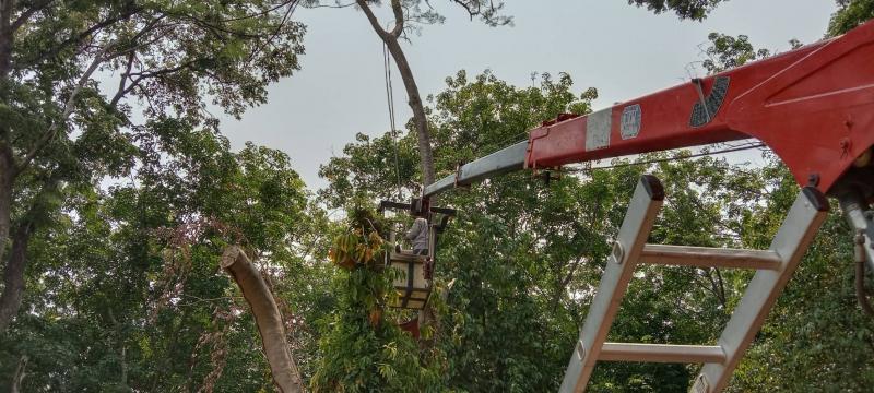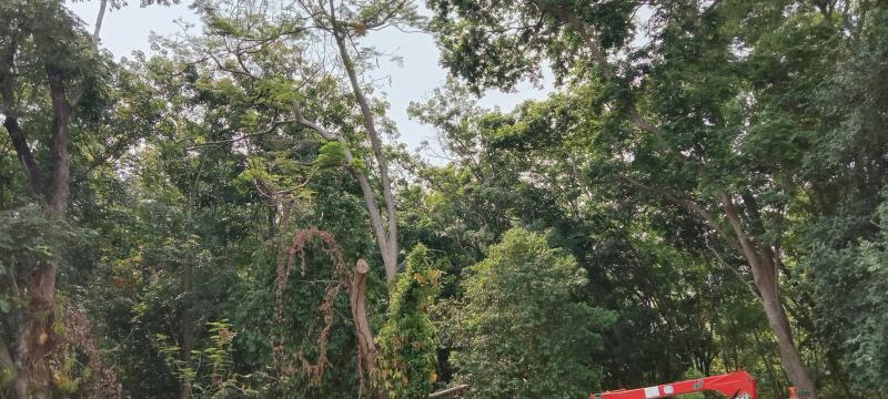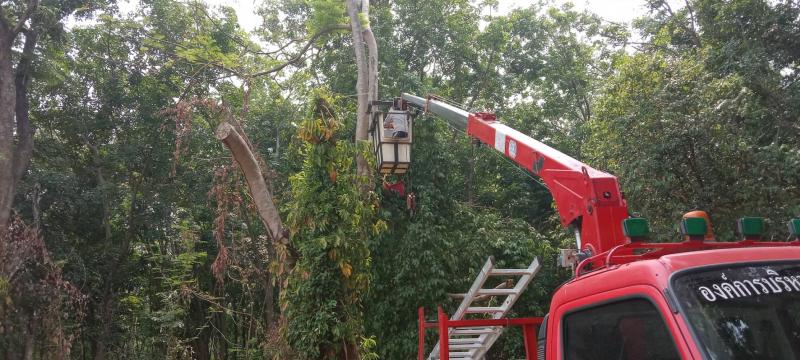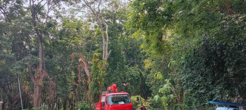 กองช่างองค์การบริหารส่วนตำบลค้อใต้ ลงพื้นที่ตัดกิ่งไม้ตามแนวแก่งน้ำ โรงเรียนคำเจริญวิทยา บ้านคำเจริญ ม.5
