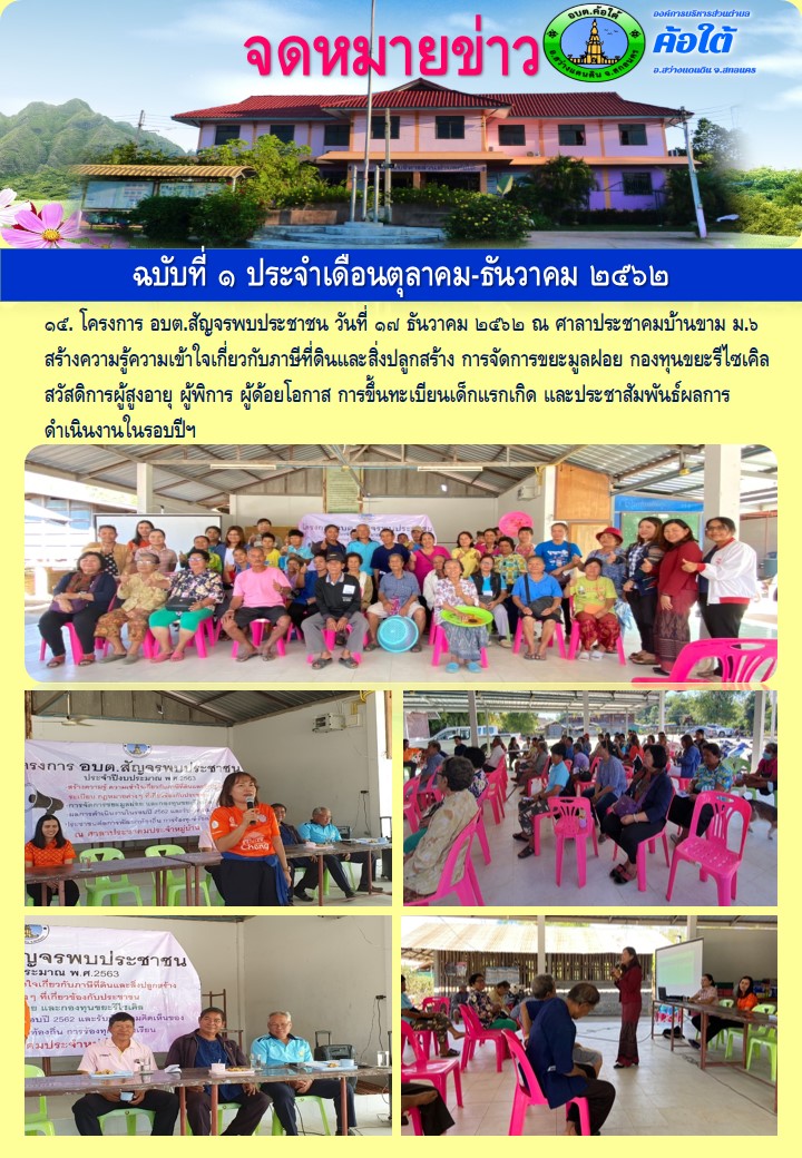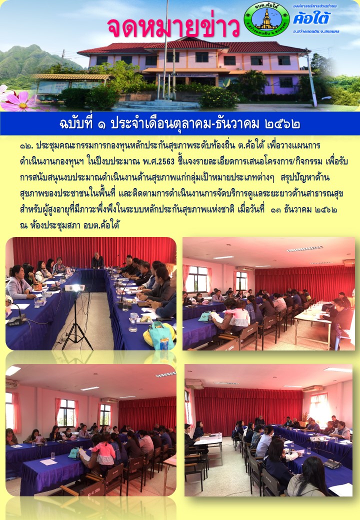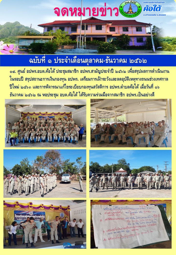 ประชาสัมพันธ์ จดหมายข่าว อบต.ค้อใต้ ฉบับที่ 1 ประจำเดือนตุลาคม-ธันวาคม 2562