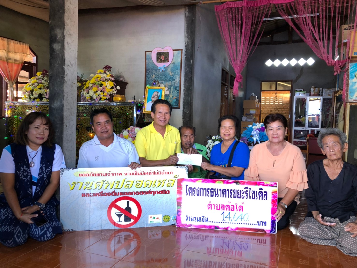 กองทุนธนาคารขยะรีไซเคิลตำบลค้อใต้ มอบเงินสงเคราะห์ศพ ให้แก่ทายาท นางสุวิทย์ ตุ้มทอง ม.9 บ้านขามพัฒนา เป็นเงิน 14,640 บาท