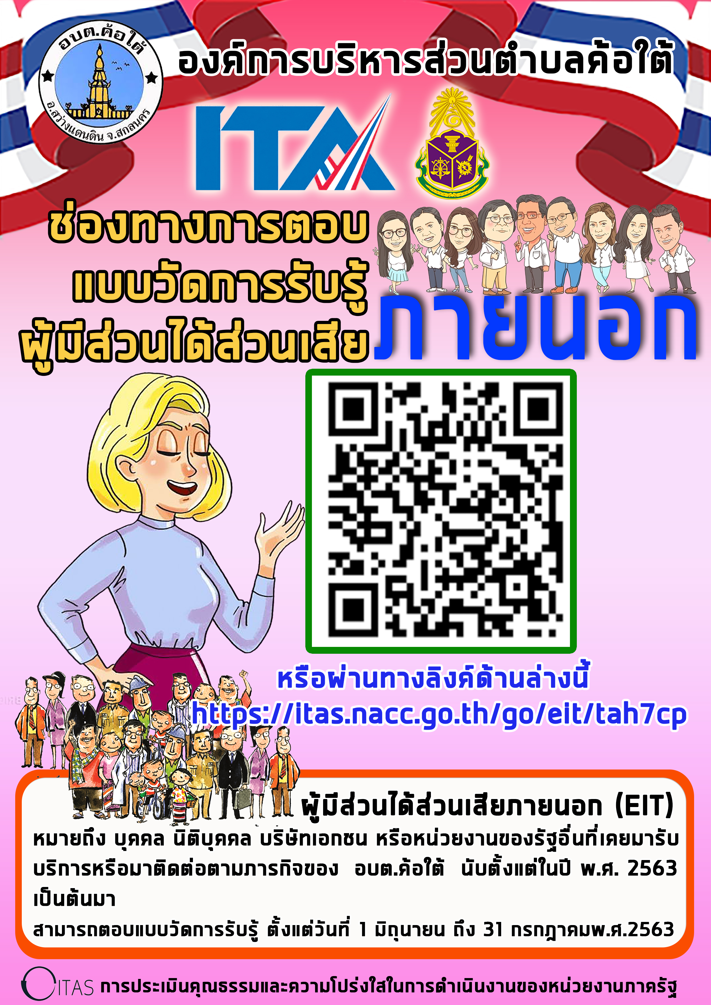 องค์การบริหารส่วนตำบลค้อใต้ ขอประชาสัมพันธ์เชิญชวนประชาชนผู้มีส่วนได้ส่วนเสียภายนอก (EIT) (ผู้มีส่วนได้ส่วนเสียภายนอก (EIT)หมายถึง บุคคล นิติบุคคล บริ