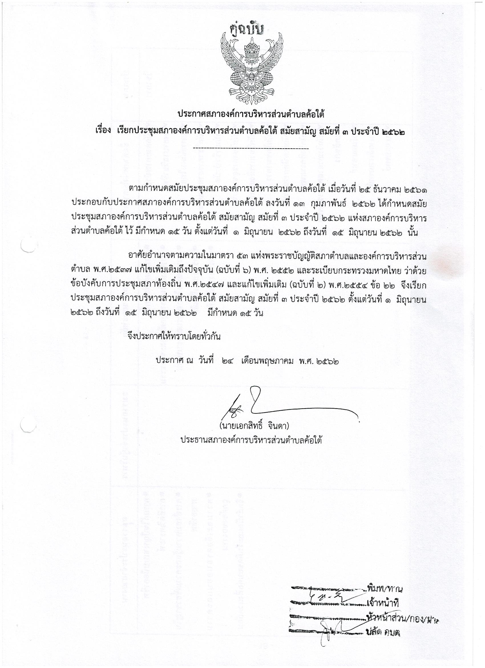เรียกประชุมสภาองค์การบริหารส่วนตำบลค้อใต้ สมัยสามัญ สมัยที่ 3 ประจำปี 2562