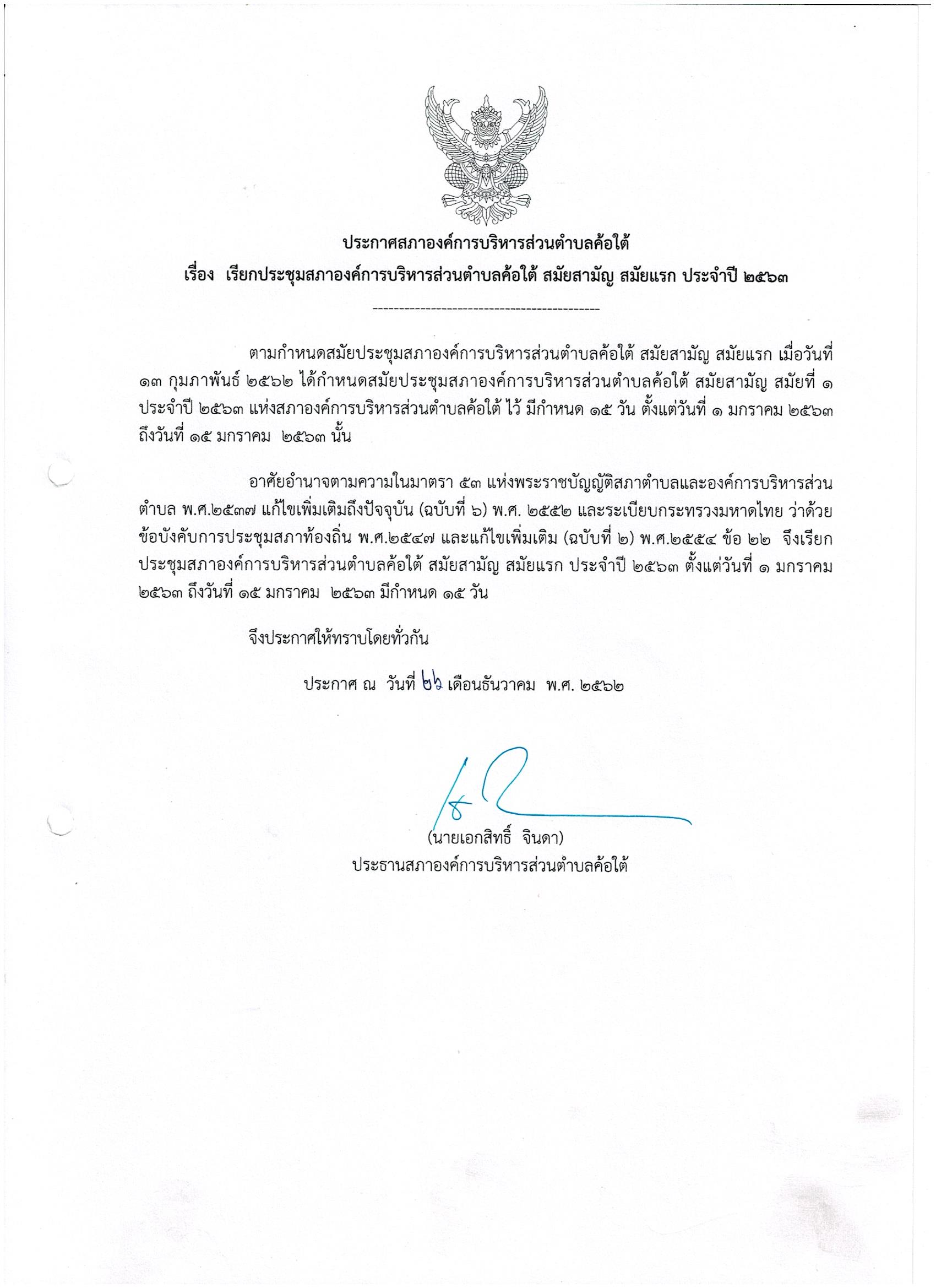เรียกประชุมสภาองค์การบริหารส่วนตำบลค้อใต้ สมัยสามัญ สมัยแรก ประจำปี 2563