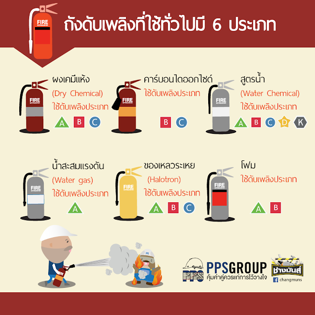 ถังดับเพลิงที่ใช้ทั่วไปมี 6 ประเภท