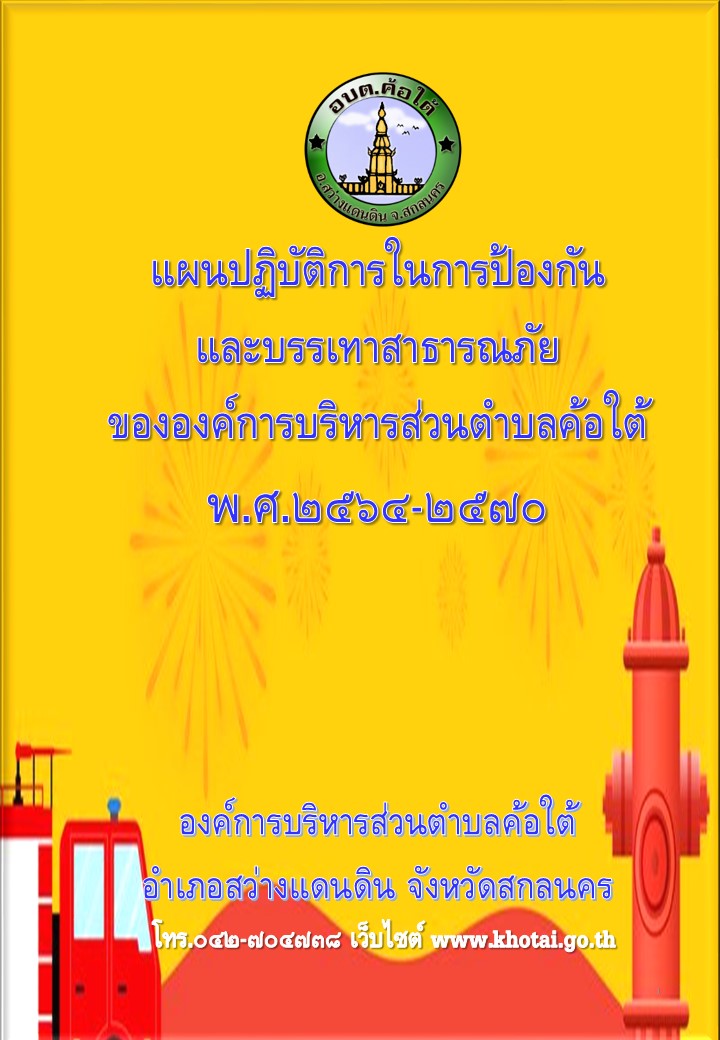ประกาศใช้แผนปฏิบัติการในการป้องกันและบรรเทาสาธารณภัยขององค์การบริหารส่วนตำบลค้อใต้ พ.ศ. 2564-2570