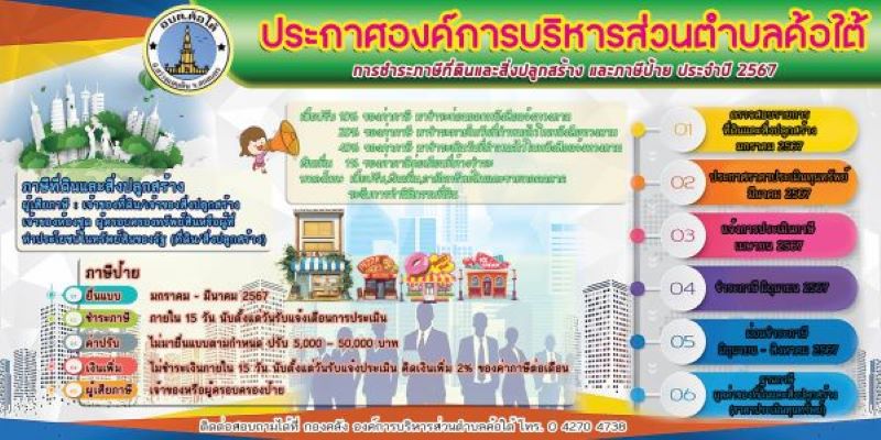 การชำระภาษี และ ระเบียบและอัตราป้าย/ภาษีที่ดินและสิ่งปลูกสร้าง ประจำปีพ.ศ.2567