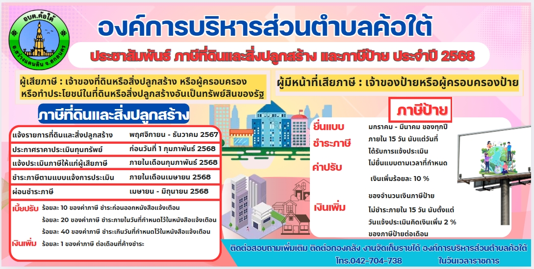 ประชาสัมพันธ์ภาษีที่ดินและสิ่งปลูกสร้าง และภาษีป้าย ประจำปี 2568