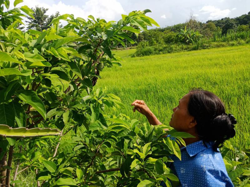 ตรวจสอบพื้นที่สวนเกษตรอินทรีย์ นางดวงเศษ ธิมะสาร ม.5 บ้านคำเจริญ