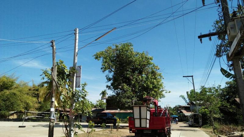 งานไฟฟ้า กองช่าง อบต.ค้อใต้ ออกบริการซ่อมแซมไฟฟ้าแสงสว่าง บริเวณหน้าศาลาประชาคมบ้านหนองโข่ย ม.๖ วันที่ ๑๗ ธันวาคม ๒๕๖๒
