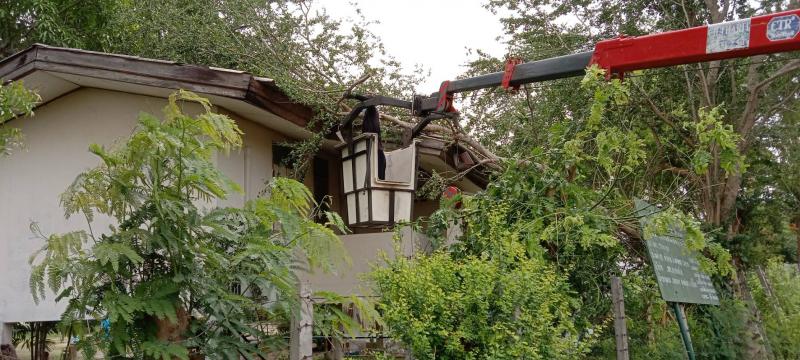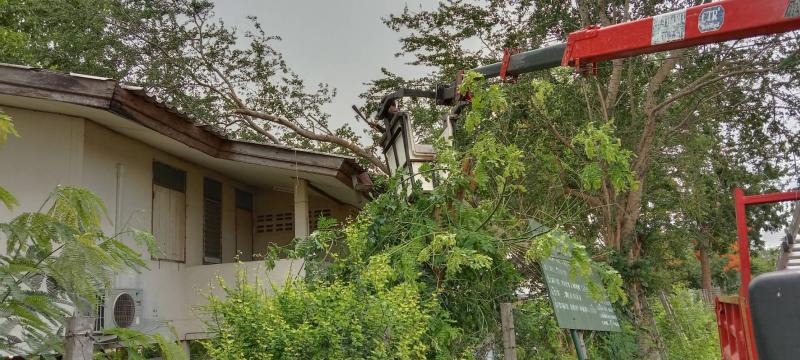 วันที่ 29 เมษายน 2565 กองช่างองค์การบริหารส่วนตำบลค้อใต้ลงพื้นที่ตัดไม้ที่ล้มทับบ้านพักสถานีอนามัยเฉลิมพระเกียรติฯบ้านขาม