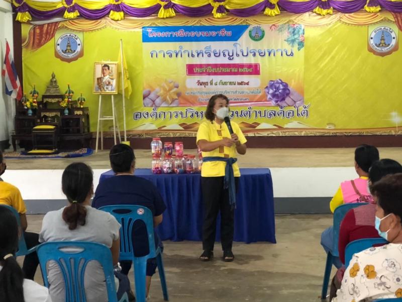 วันที่ 8 กันยายน 2564 กองสวัสดิการสังคม อบต.ค้อใต้ ดำเนินโครงการฝึกอบรมอาชีพการทำเหรียญโปรยทาน