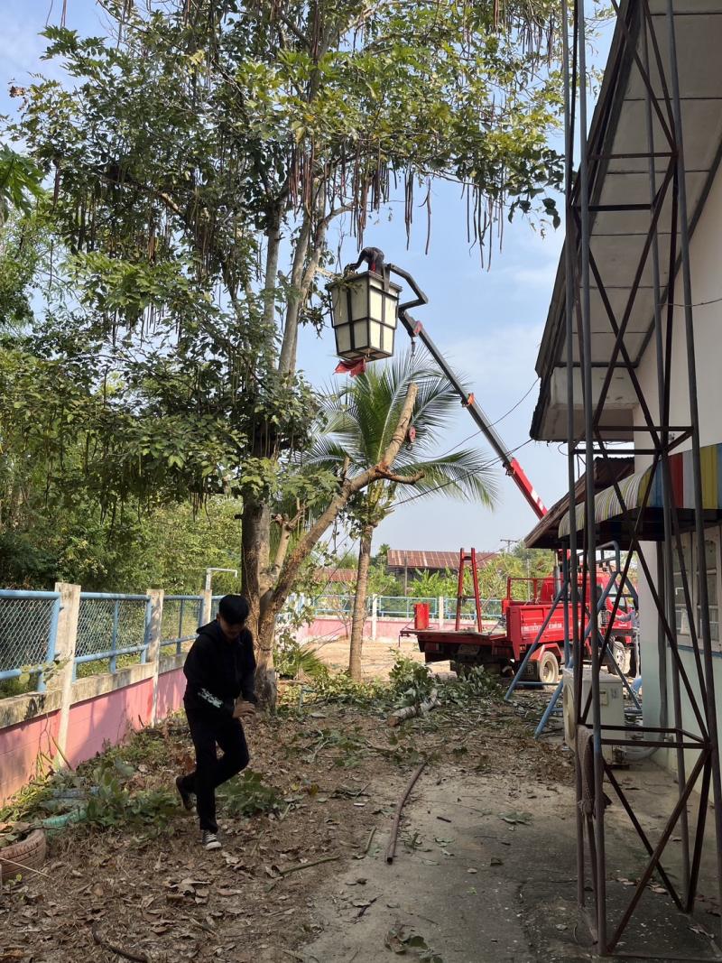 กองช่างร่วมกับสำนักปลัด องค์การบริหารส่วนตำบลค้อใต้ลงพื้นที่ตัดกิ่งไม้ปรับปรุงภูมิทัศน์ ณ ศูนย์พัฒนาเด็กเล็กบ้านขามพัฒนา