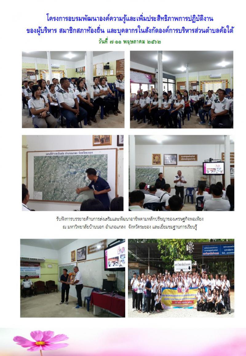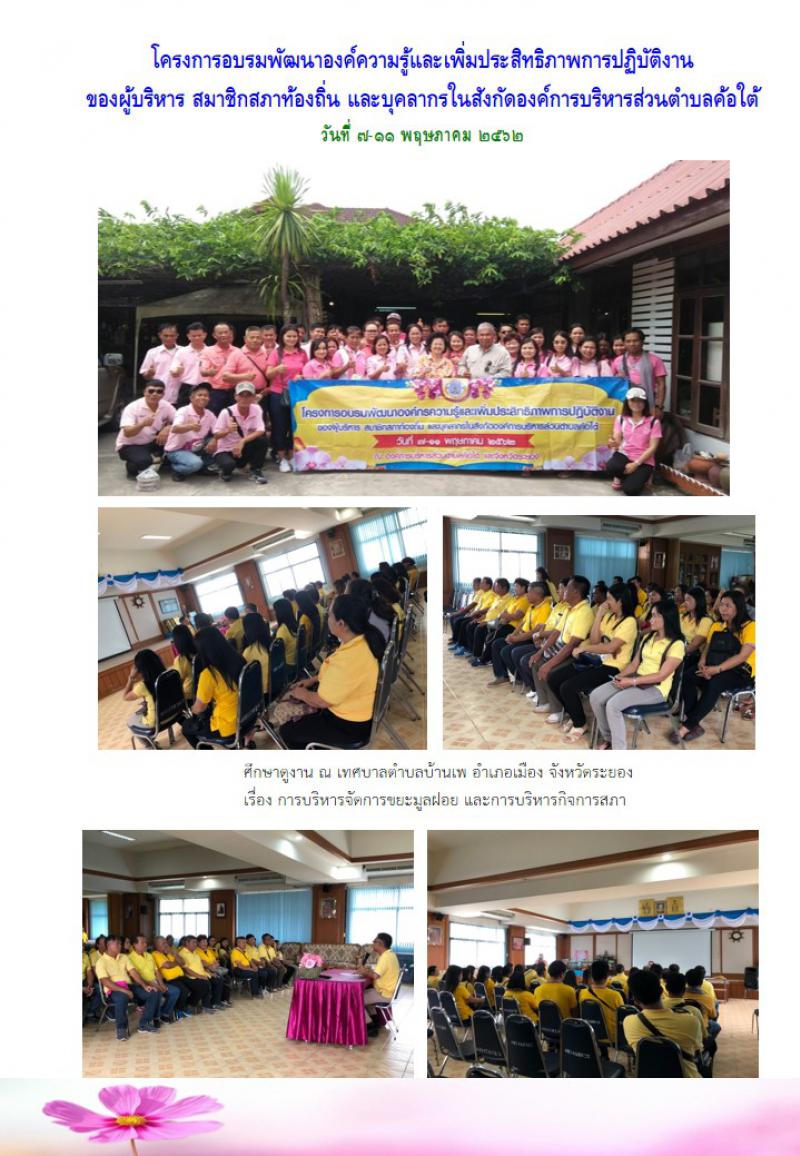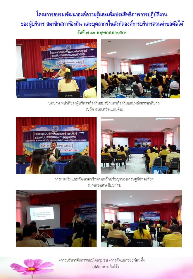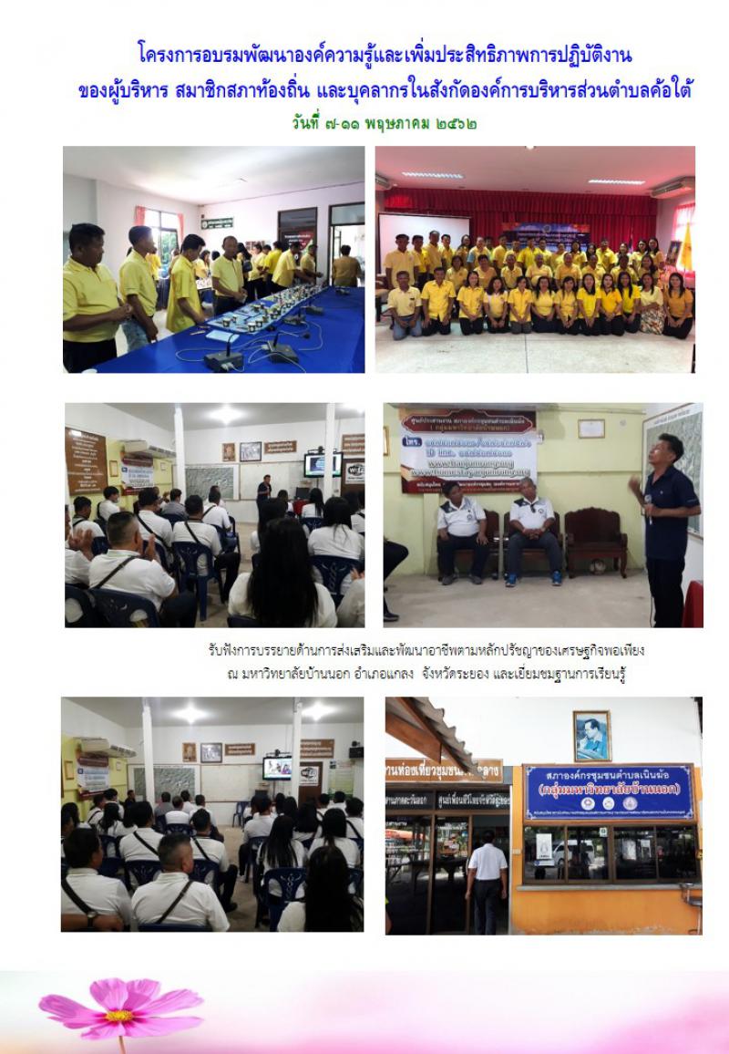 โครงการอบรมพัฒนาองค์ความรู้และเพิ่มประสิทธิภาพการปฏิบัติงานของผู้บริหาร สมาชิกสภาท้องถิ่น และบุคลากรในสังกัดองค์การบริหารส่วนตำบลค้อใต้ ประจำปีงบประมาณ พ.ศ. 2562