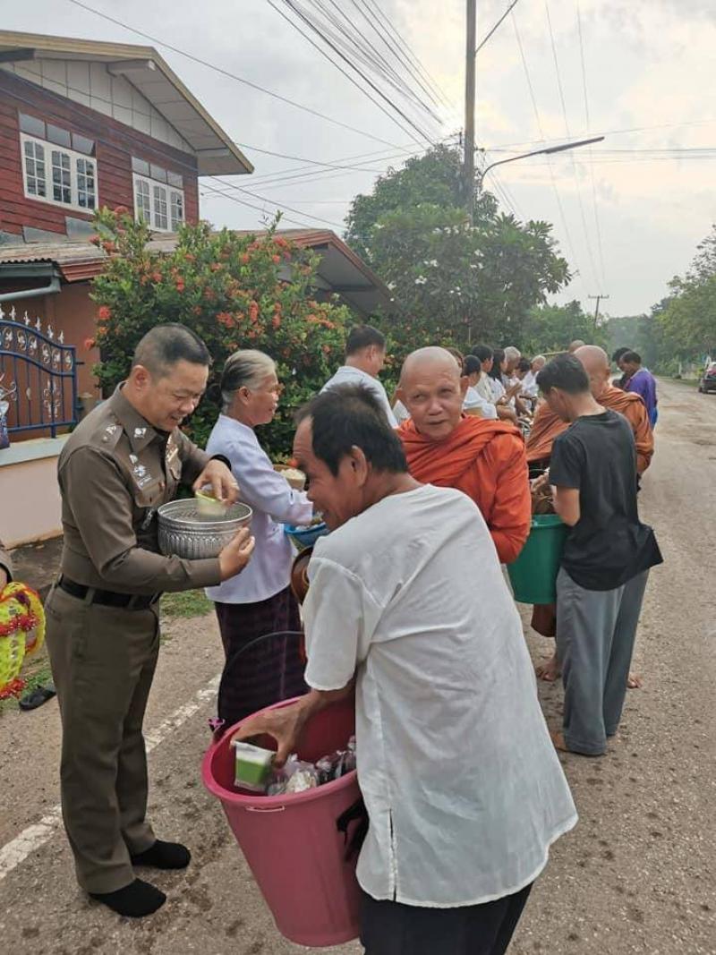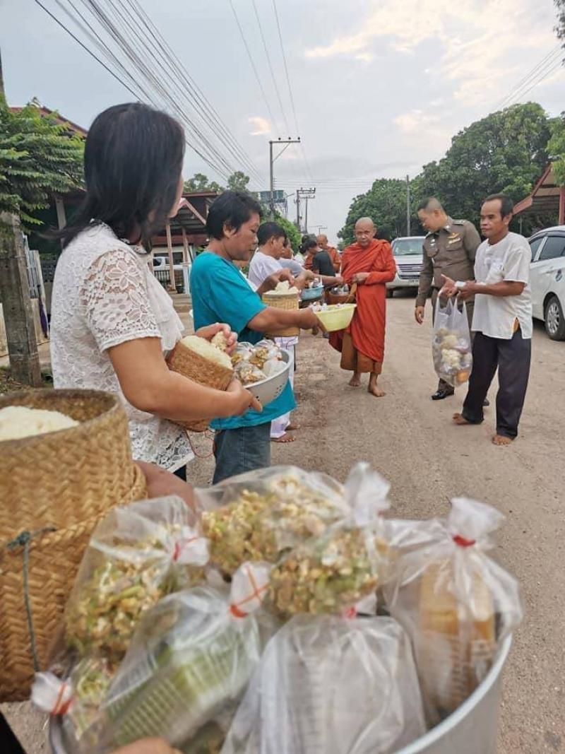 ทำบุญตักบาตร ฟังธรรมเทศนาเนื่องในวันพระและเทศกาลเข้าพรรษา ณ วัดพระธาตุฝุน ม.5 บ้านคำเจริญ