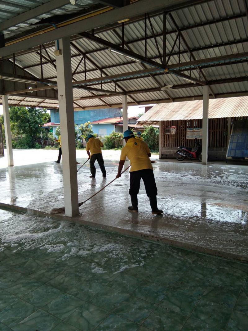 งานป้องกันและบรรเทาสาธารณภัย อบต.ค้อใต้ ร่วมกับจิตอาสาตำบลค้อใต้ ลงพื้นที่ล้างทำความสะอาด ศาลาประชาคมประจำหมู่บ้าน/ลานเอนกประสงค์ทั้ง 10 หมู่บ้าน เพื่อป้องกันการแพร่ระบาดไวรัสโคโรนา2019(COVID-19) ระหว่างวันที่ 23-25 มีนาคม 2563