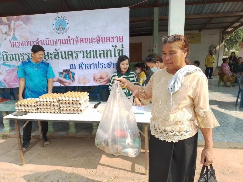 วันที่ 7 มีนาคม 2566 องค์การบริหารส่วนตำบลค้อใต้ ดำเนินโครงการกำจัดขยะอันตราย กิจกรรมขยะอันตรายแลกไข่ ประจำปีงบประมาณ พ.ศ. 2566 ณ ศาลาประชาคมบ้านคำเจริญ ม.5