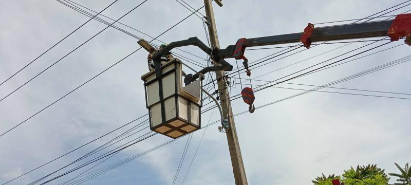 วันที่ 21 มิถุนายน 2565 กองช่างองค์การบริหารส่วนตำบลค้อใต้ ลงพื้นที่ซ่อมแซมไฟฟ้าส่องสว่างสาธารณะบ้านคำเจริญ ม. 5 เพื่อให้ประชาชนสัญจรสะดวกในเวลากลางคืน