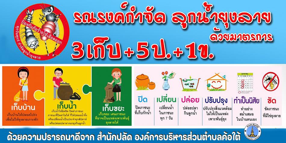 ป้องกันโรคไข้เลือดออกและโรคที่ติดต่อทางยุง ด้วยการกำจัดลูกน้ำยุงลายตัวการนำโรค ตามมาตรการ 3 เก็บ + 5ป. + 1ข. [14 กรกฎาคม 2566]