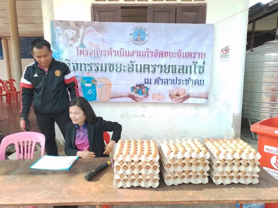 วันที่ 27 กุมภาพันธ์ 2566 องค์การบริหารส่วนตำบลค้อใต้ ดำเนินโครงการกำจัดขยะอันตราย กิจกรรมขยะอันตรายแลกไข่ ประจำปีงบประมาณ พ.ศ. 2566 ณ ศาลาประชาคมบ้านค้อใต้ ม.1 [27 กุมภาพันธ์ 2566]