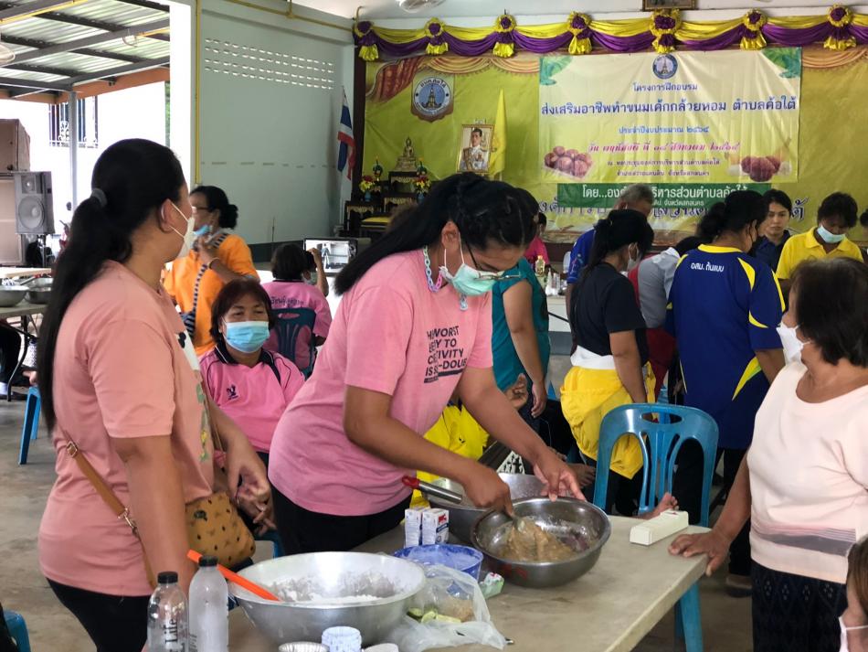 โครงการฝึกอบรมส่งเสริมอาชีพทำขนมเค้กกล้วยหอม ประจำปีงบประมาณ 2565 [18 สิงหาคม 2565]