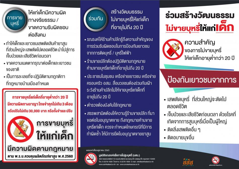 ประชาสัมพันธ์การปฏฺิบัติตามพระราชบัญญัติควบคุมผลิตภัณฑ์ยาสูบ พ.ศ. 2560 กับร้านค้า หรือผู้ขายปลีก และประชาชนทั่วไป [15 กุมภาพันธ์ 2565]