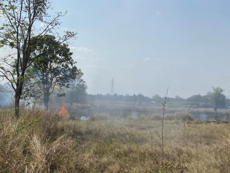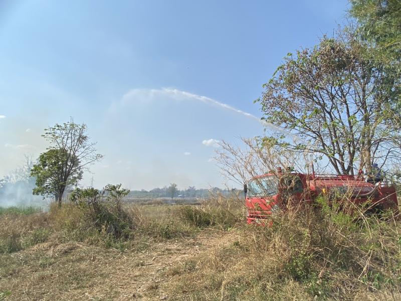 งานป้องกันและบรรเทาสาธารณภัย สำนักปลัด องค์การบริหารส่วนตำบลค้อใต้ ระงับเหตุไฟลามทุ่งบ้านคำเจริญ ม.5 ตำบลค้อใต้