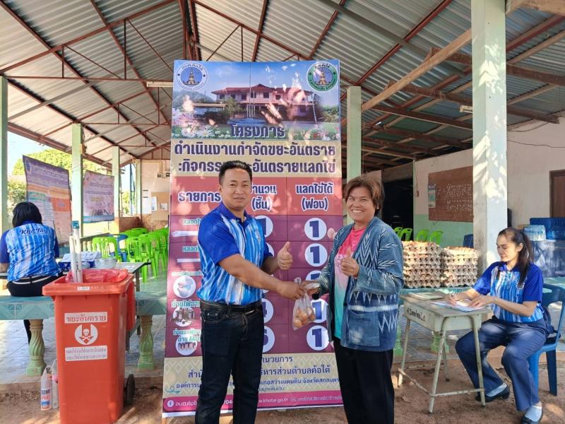 โครงการดำเนินงานกำจัดขยะอันตราย:กิจกรรมขยะอันตรายแลกไข่ ประจำปีงบประมาณ พ.ศ. 2568 ณ ศาลาประชาคม บ้านคำเจริญ ม.5