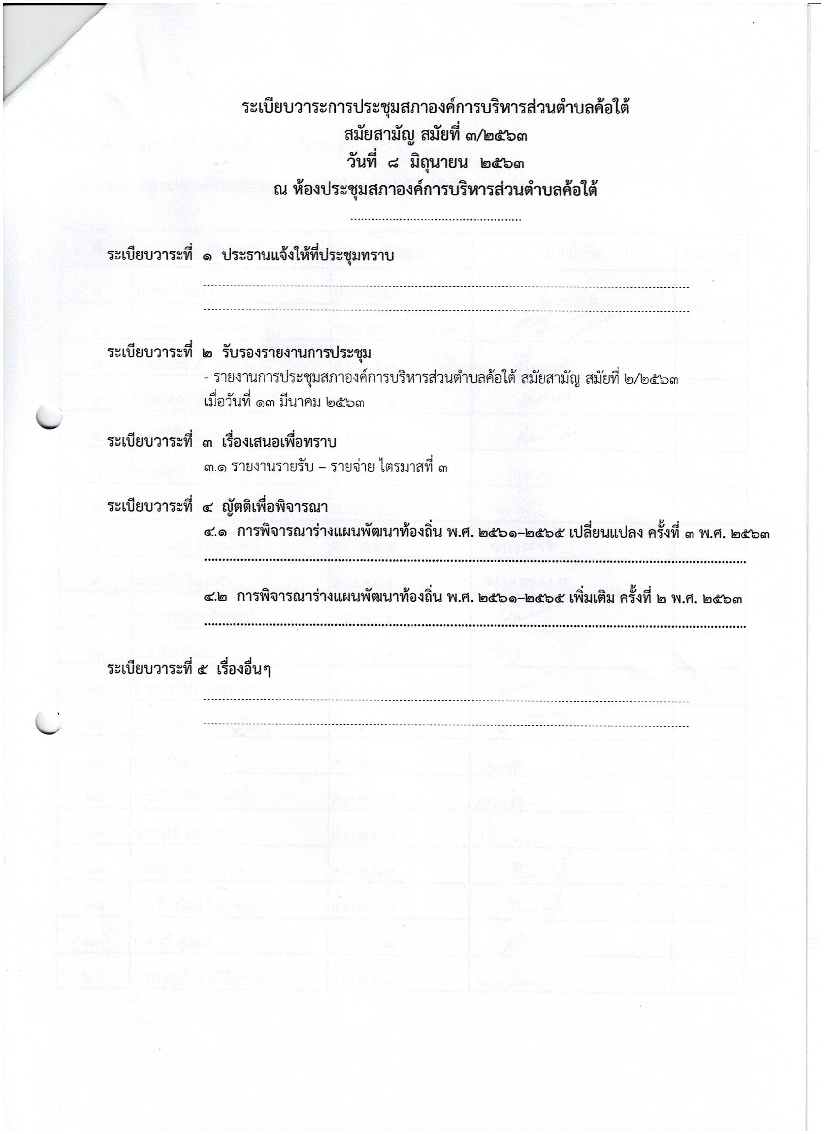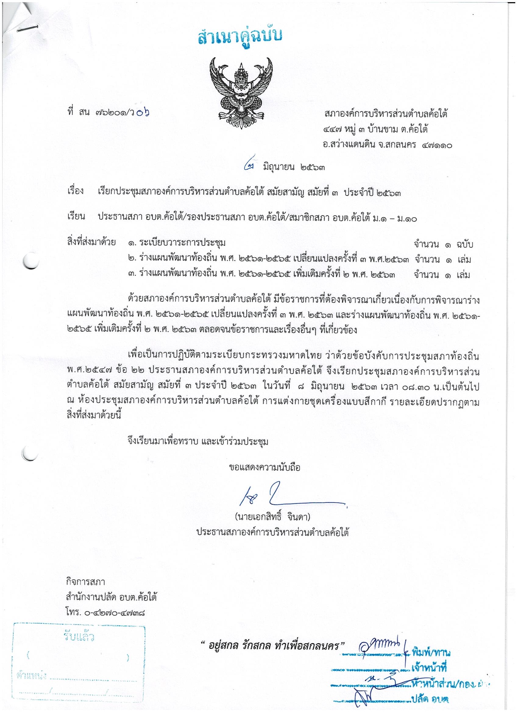 หนังสือเรียกประชุมสภาองค์การบริหารส่วนตำบลค้อใต้ สมัยสามัญ สมัยที่ 3 ประจำปี 2563