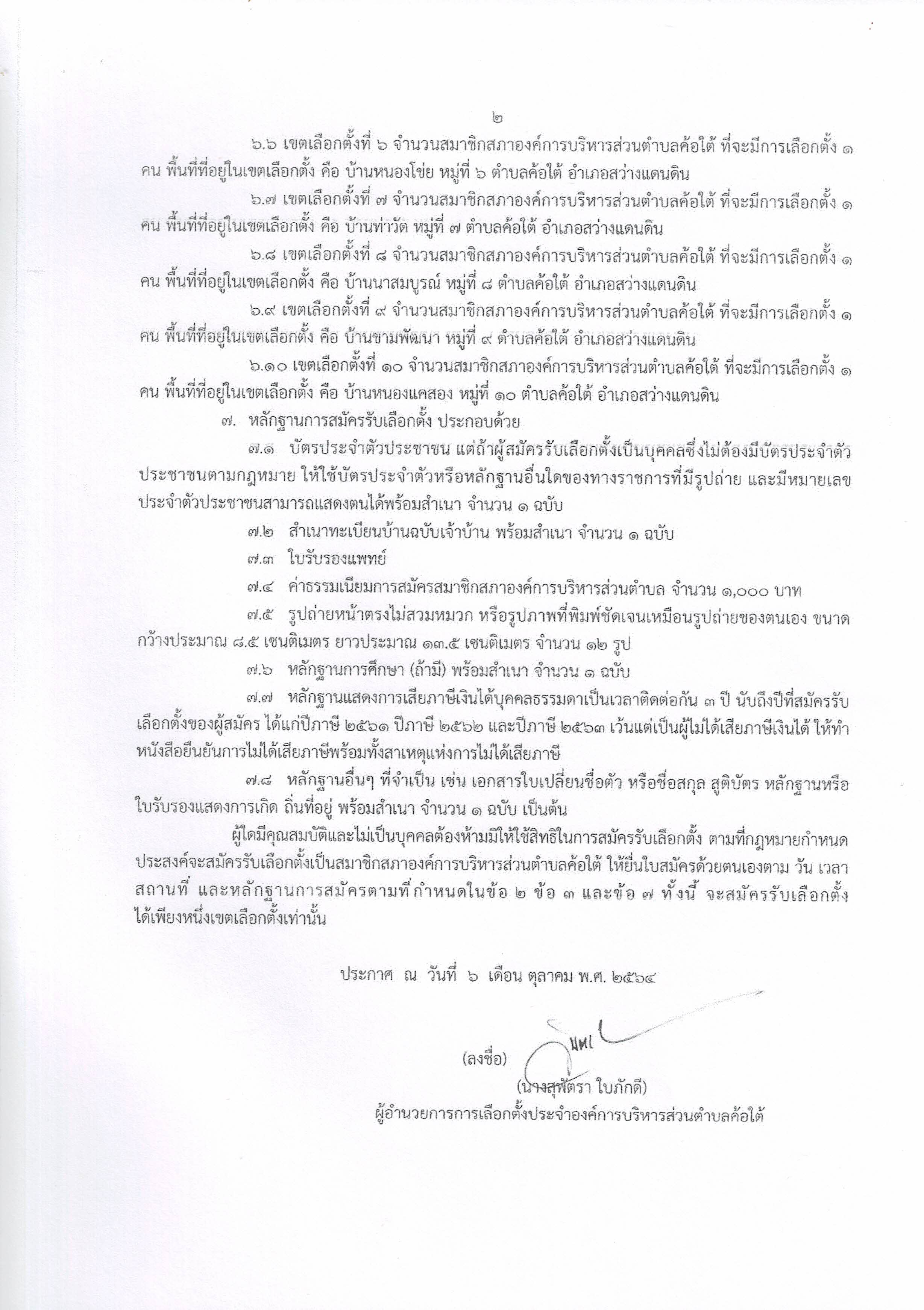 ประชาสัมพันธ์การประกาศรับสมัครเลือกตั้งสมาชิกสภาองค์การบริหารส่วนตำบล และนายกองค์การบริหารส่วนตำบล