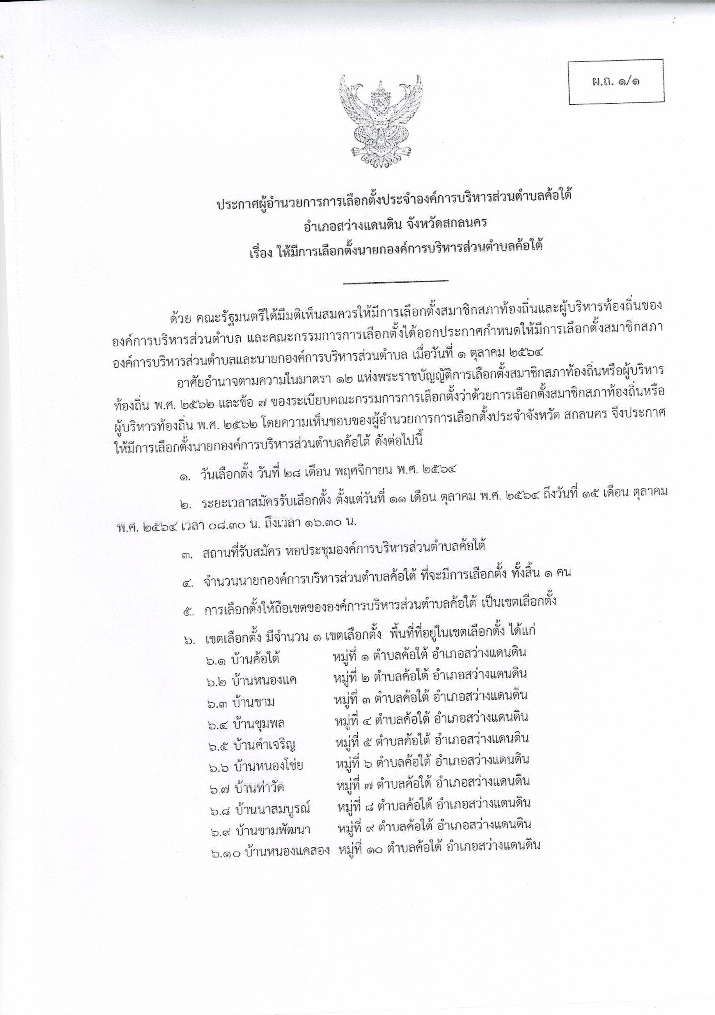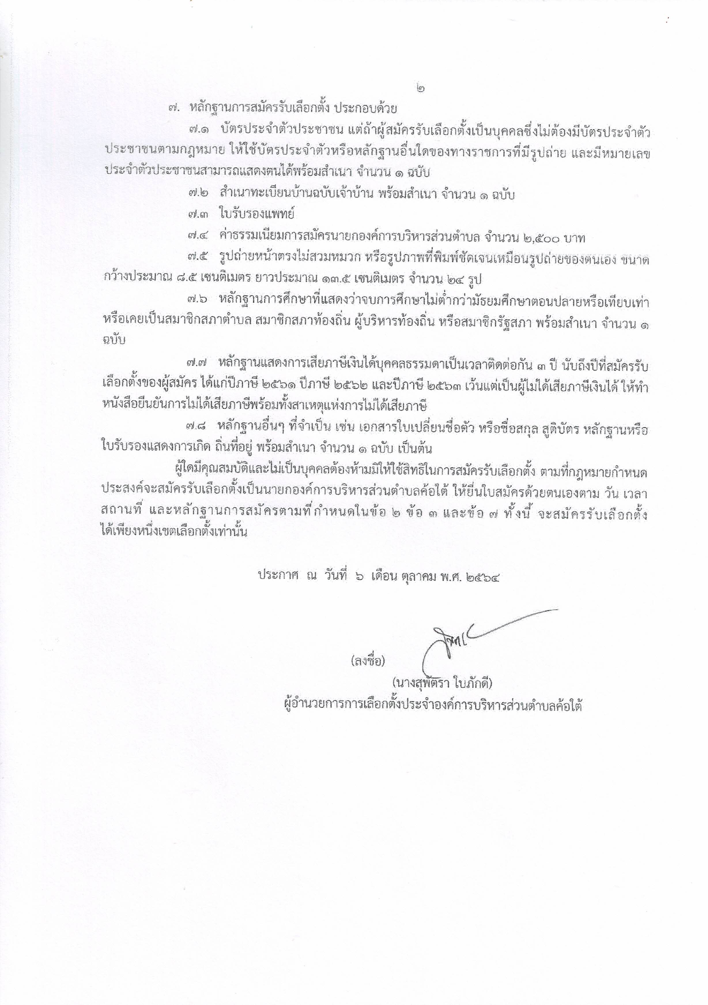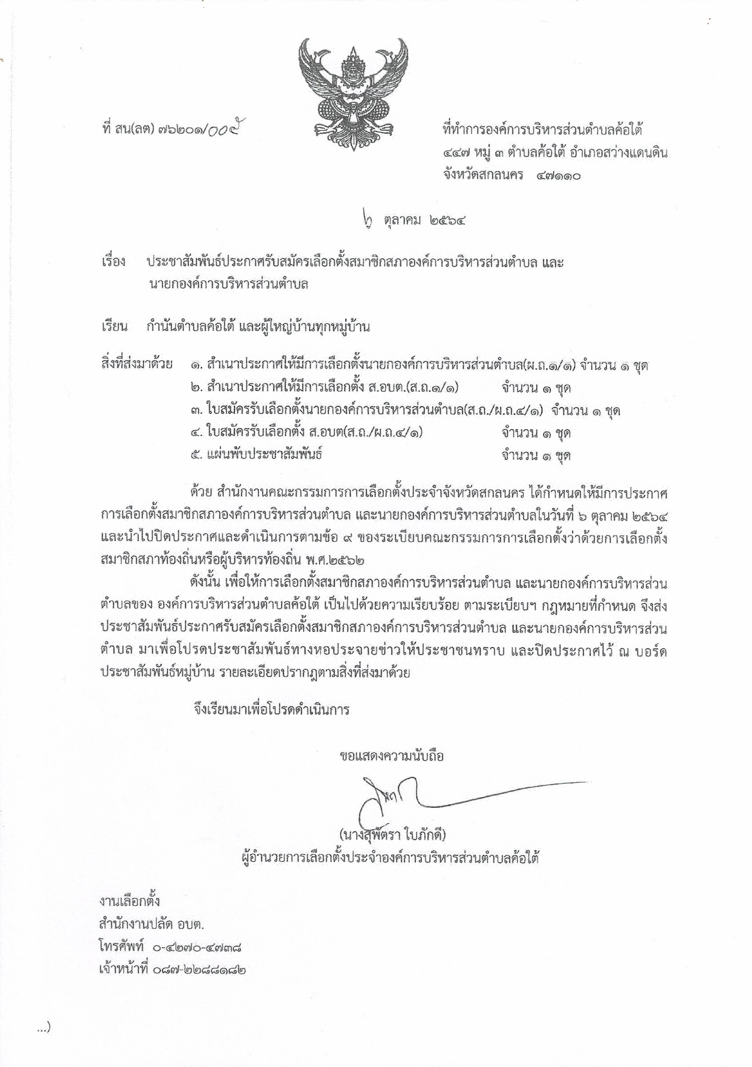 องค์การบริหารส่วนตำบลค้อใต้ของประชาสัมพันธ์การประกาศรับสมัครเลือกตั้งสมาชิกสภาองค์การบริหารส่วนตำบล และนายกองค์การบริหารส่วนตำบล