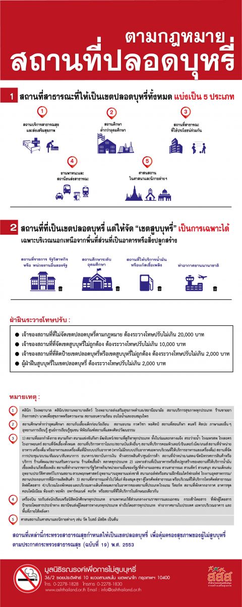 ประชาสัมพันธ์สถานที่ปลอดบุหรี่ตามกฎหมาย